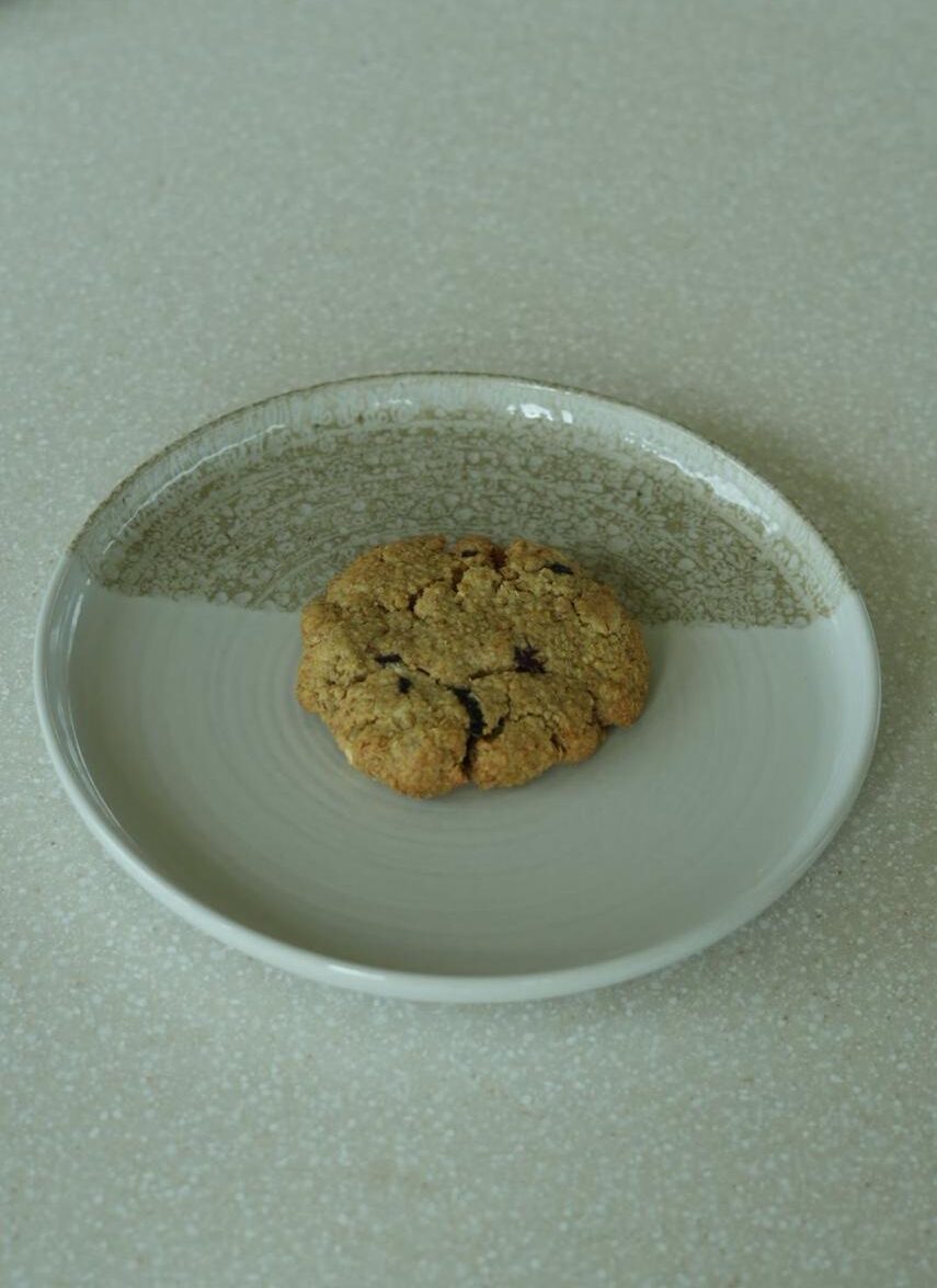 كوكيز الشوفان المقرمش: شوفان ذهبي مخبوز حتى يصبح مقرمشًا تمامًا، مرصع بالزبيب الحلو والشوكولاتة البيضاء الكريمية، لقمة حنين مع قلب طري.